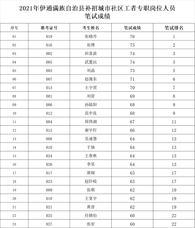 根据《2021年伊通满族自治县补招城市社区工者专职岗位人员公告》,现就面试有关事项通知如下: