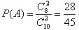 例1、有10件产品,8件正品,2件次品,从这些产品中任取2件,则两件都是正品的概率是多少?